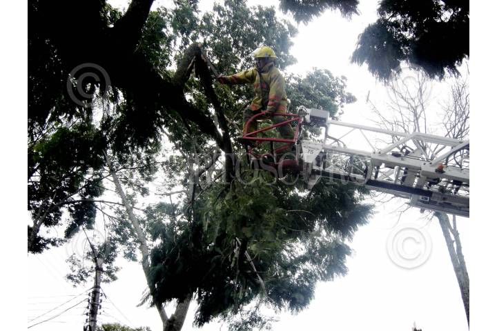 XALAPA, VERACRUZ 23OCTUBRE2007.- Bomberos cortan ramas de àrboles que quedaron frágiles debido a las rachas del frente fío numero cuatro. FOTO: JORGE VALDÉS/CUARTOSCURO.COM