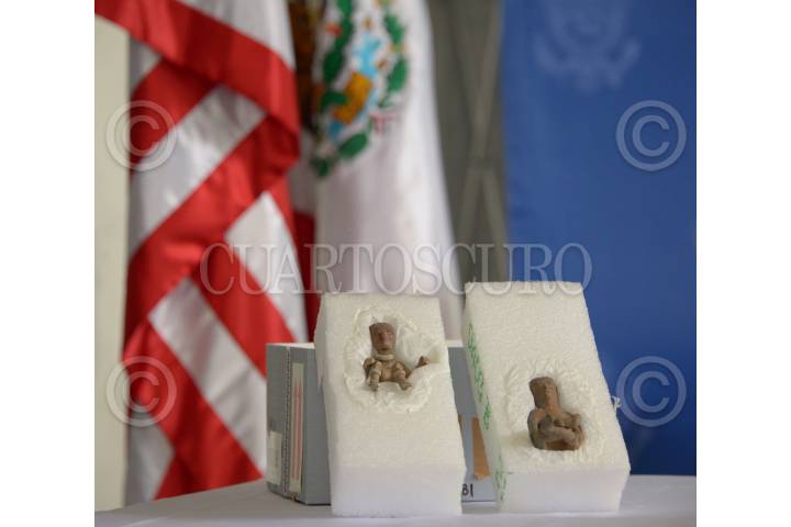 CIUDAD DE MÉXICO, 09ABRIL2019.- Aída Castilleja, secretaria técnica del INAH, encabezó la restitución de dos piezas arqueológicas de filiación Teotihuacana que se habían sustraído ilegalmente del país. El gobierno de los Estados Unidos entregó las figurillas antropomorfas, datadas entre 200 y 700 d.C. en la embajada estadounidense. FOTO: INAH /CUARTOSCURO.COM