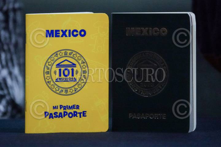 Aspectos de Mi Primer Pasaporte y el Pasaporte Clásico de la iniciativa 101 Museos, durante la presentación del primero en el Museo Interactivo de Economía.