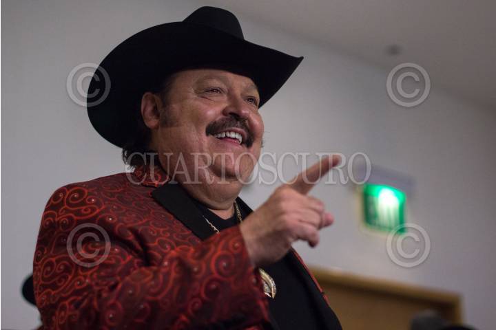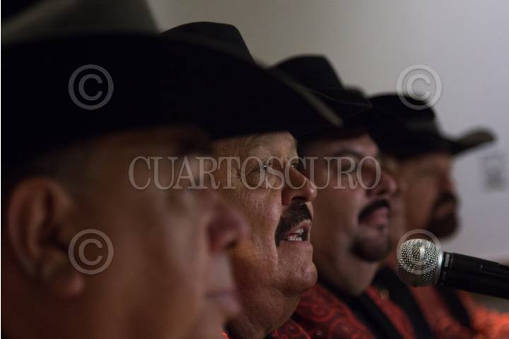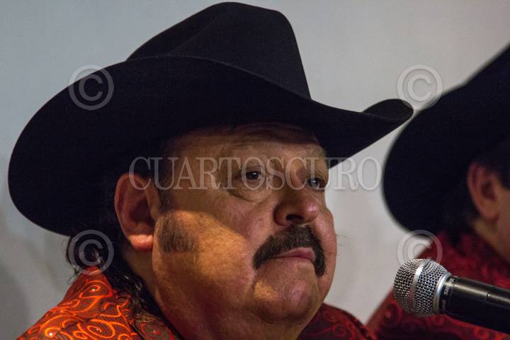 MÉXICO, D.F., 19MAYO2015.- El cantante de música norteña, Ramón Ayala y sus bravos del norte durante la conferencia que realizó para dar a conocer su próxima presentación en la Arena Ciudad de México y sus proyectos a realizar por sus 50 años de carrera musical. FOTO: ENRIQUE ORDÓÑEZ /CUARTOSCURO.COM