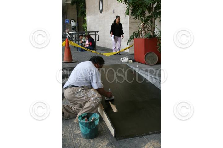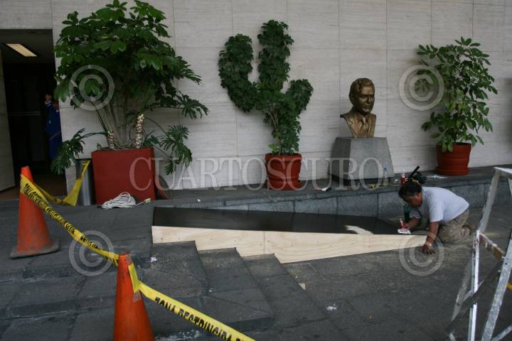 MÉXICO, D.F., 28AGOSTO2009.- Empleados de mantenimiento, colocan una rampa en uno de los accesos a la Cámara de Diputados, esto para que las personas con capacidades diferentes tenga un mejor desplazamiento en estas instalaciones. FOTO: GUILLERMO PEREA /CUARTOSCURO.COM