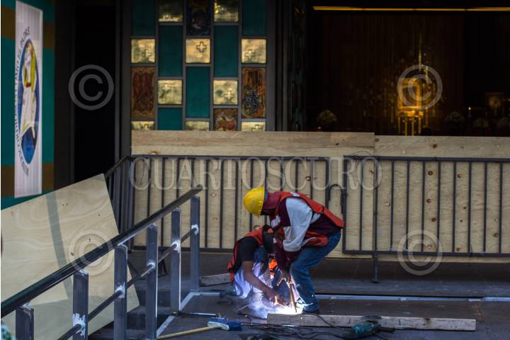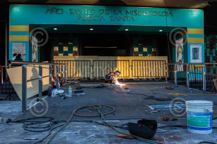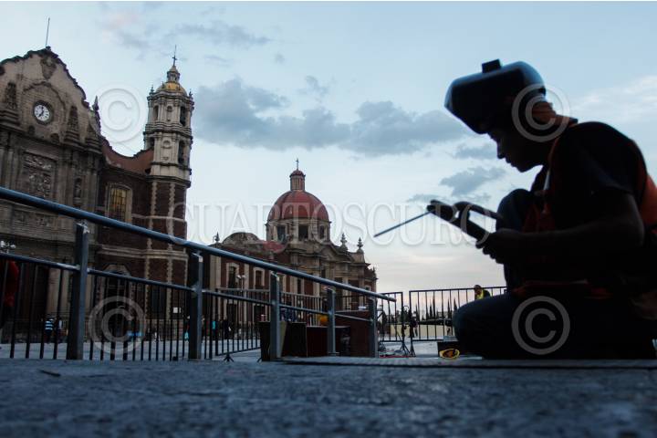 MÉXICO, D.F., 18ENERO2016.- Trabajadores comenzaron con las adecuaciones a la Basílica de Guadalupe donde en Febrero asistirá el Papa Francisco con motivo de su visita a México. En la Entrada colocaron una rampa la cual servirá para que entre el Papa Móvil al Recinto. FOTO: ENRIQUE ORDÓÑEZ /CUARTOSCURO.COM