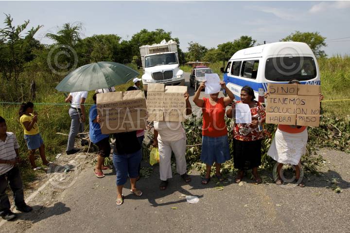 JALAPA, TABASCO, 18OCTUBRE2012.- Habitantes que conforman un bloqueo humano con ramas y una cuerda de nylon mantienen cerrada la carretera interestatal en el tramo Macuspana-Jalapa a la altura de la ranchería Chichonal primera sección. La acción emprendida en donde no dejan pasar ningún tipo de vehículo se debe a las malas condiciones de la cinta asfáltica que ha provocado accidentes y muertes de los lugareños. FOTO: MARCO POLO GUZMÁN HERNÁNDEZ /CUARTOSCURO.COM