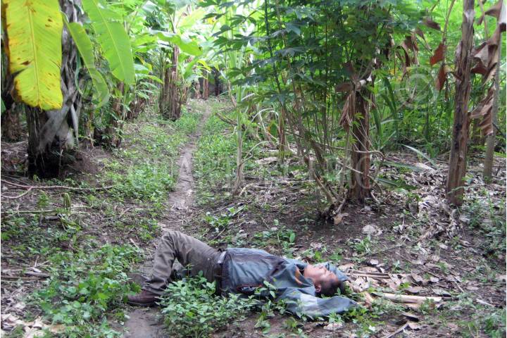 VILLAHERMOSA, TABASCO, 23JUNIO2009.- Un joven de aproximadamente 30 años de edad, con ropa deportiva fue encontrado muerto con varias apuñaladas en el cuerpo. Los hechos de sangre se registraron en el sector los Mangos de la ranchería Buenavista segunda sección. FOTO: MARCO POLO GUZMÁN HERNÁNDEZ/CUARTOSCURO.COM