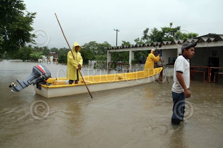 CÁRDENAS, TABASCO, 04NOVIEMBRE2009.- Habitantes de las rancherías, El Golpe, El Mingo, Tío Moncho y ejido Julian Montejo, se encuentran incomunicados vía terrestre. Ahí el nivel del desborde del río rebasa los cuatro metros y en varias partes tan solo se alcanzan a ver el techo de las casas. FOTO: MARCO POLO GUZMÁN HERNÁNDEZ/CUARTOSCURO.COM