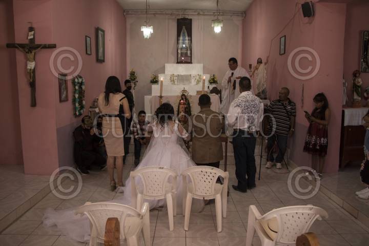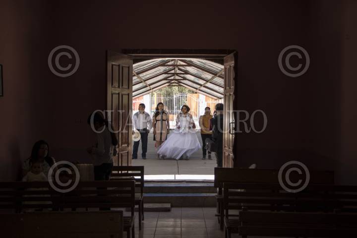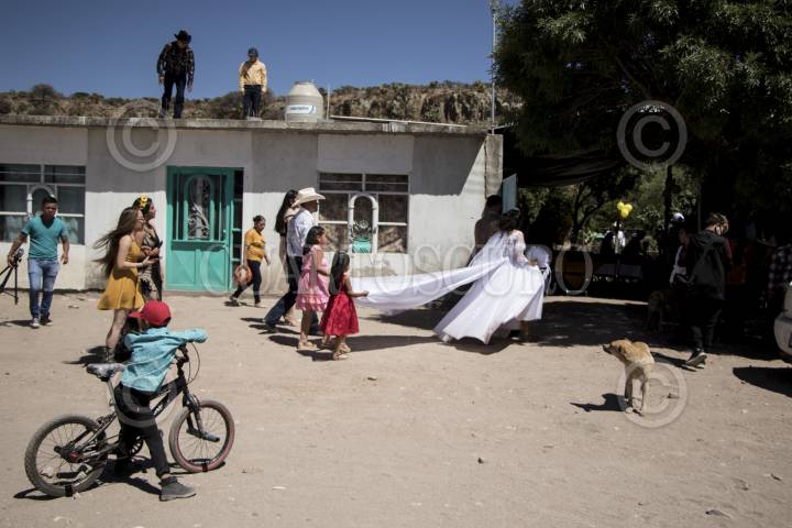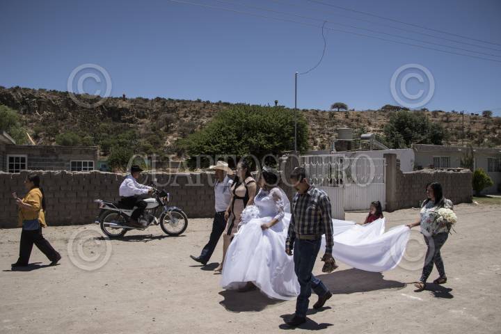 Traslado de la novia acompañada por el papá y los padrinos. Tradicionalmente el recorrido de la casa a la Iglesia tiene que hacerse a pie.