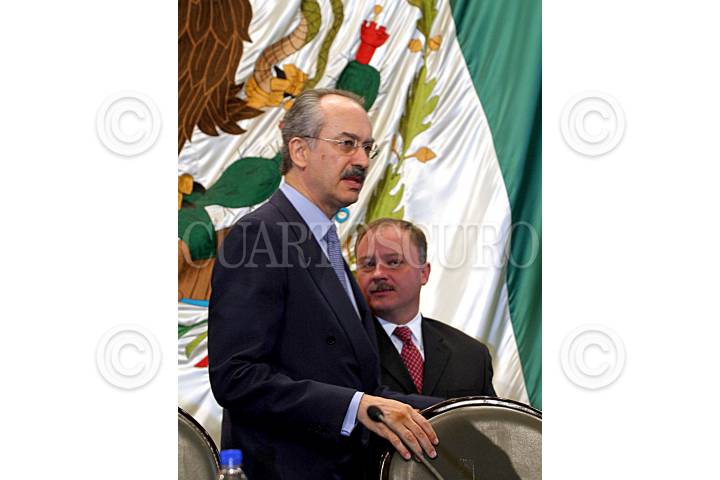 México, D.F. 26 JULIO 2004.- Francisco Gil Díaz, secretario de Hacienda y Mario Beaurengard Alvarez, representante IPAB, al finalizar de comparecer ante la comisión de vigilancia del IPAB de la cámara de diputados. FOTO: Sandra Perdomo/CUARTOSCURO.COM