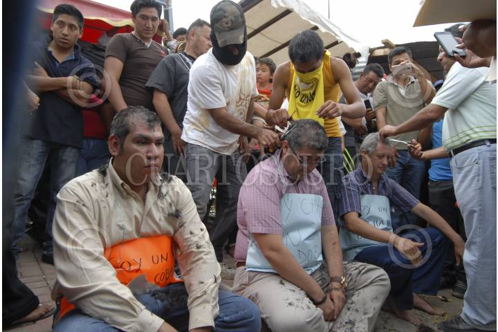 COMITÁN, CHIAPAS, 31MAYO2016.- Integrantes de la Organización Proletaria Independiente Emiliano Zapata (OPIEZ), quien dice apoyar el movimiento magisterial de la CNTE, raparon a maestros que se encuentran laborando normalmente cuando se dirigían a Tuxtla Gutiérrez a entregar documentación para poder cobrar su quincena. En el estado miles de profesores se encuentran en paro de labores en lo que ellos han llamado su lucha en contra de la Reforma Educativa. FOTO: TOÑO AGUILAR /CUARTOSCURO.COM