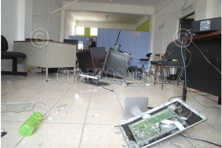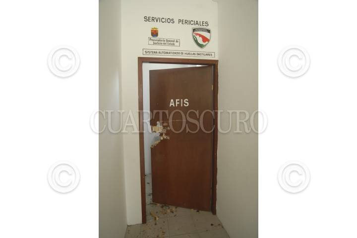 COMITÁN, CHIAPAS, 01JUNIO2016.- Luego de la detención de Santiago Calvo López, líder de la Organización Proletaria Emiliano Zapata (OPIEZ), acusado de orquestar la agresión a maestros en Comitán de Domínguez, sus correligionarios causaron destrozos a la Fiscalía de Distrito Fronterizo Sierra. FOTO: TOÑO AGUILAR /CUARTOSCURO.COM