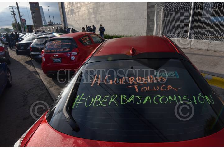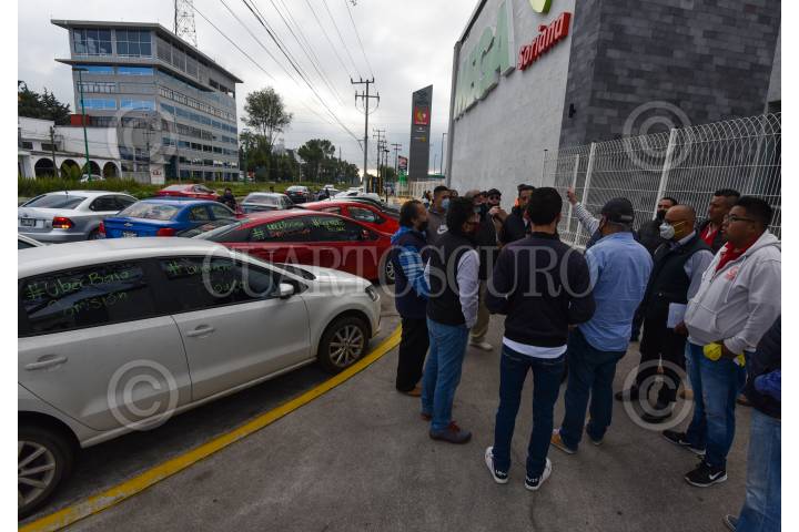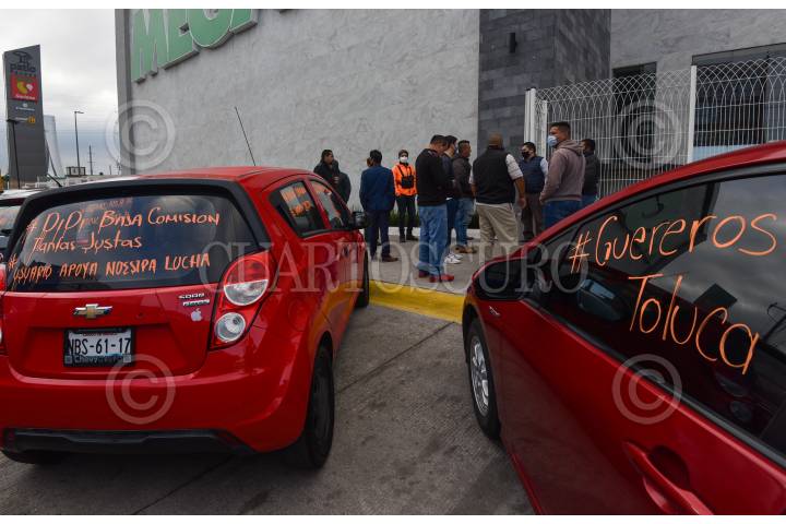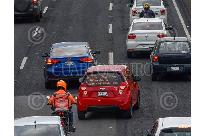 Choferes de plataformas como Didi, Uber y Rappi se manifestaron en la ciudad de Toluca exigiendo se bajen los impuestos que les cobran.