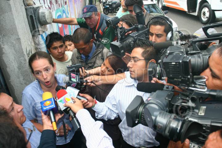 ECATEPEC, ESTADO DE MÉXICO, 23SEPTIEMBRE2008.- Carmen Garcia Garcia isnpectora de la PROFEPA en el Valle de México es cuestionada por reporteros a las afueras del predio donde permanece el cadaver de la elefanta que perdio la vida tras ser arrollada por un autobus la madrugada de hoy. FOTO: SAÚL LÓPEZ/CUARTOSCURO.COM