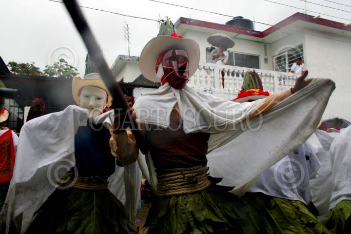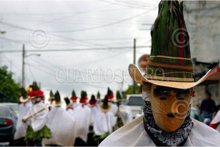 TENOSIQUE, TABASCO, 20ENERO2008.- El carnaval más raro del mundo dió inició hoy con la popular danza milinaria entre el bien en el mal, el cual es representado por hombres y mujeres que encarnan al Cojo y Pochovera. Estos personajes recorren las calles de la cabecera municipal bailando y asustando a cuantos pasen por sus caminos. FOTO: MARCO POLO GUZMÁN HERNÁNDEZ/CUARTOSCURO.COM