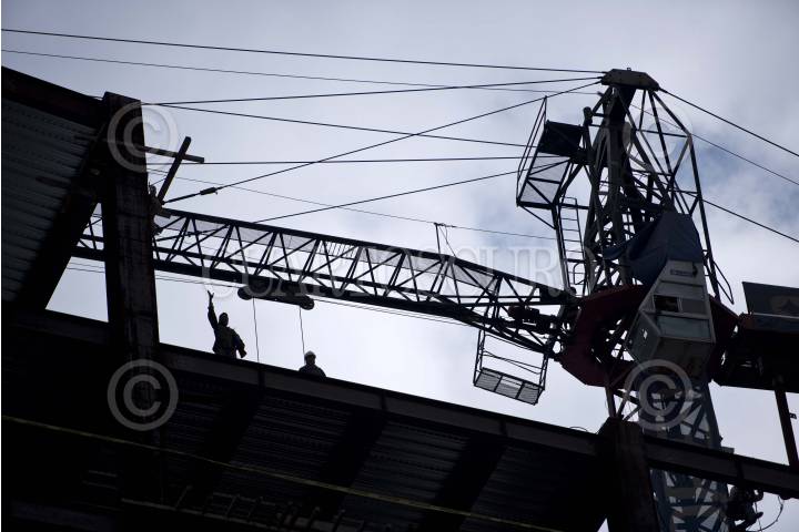 MÉXICO, D.F., 13MARZO2015.- Dos trabajadores hacen maniobras parados en una estructura metálica de la Torre Reforma, sobre Paseo de la Reforma. FOTO: DIEGO SIMÓN SÁNCHEZ /CUARTOSCURO.COM