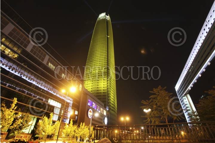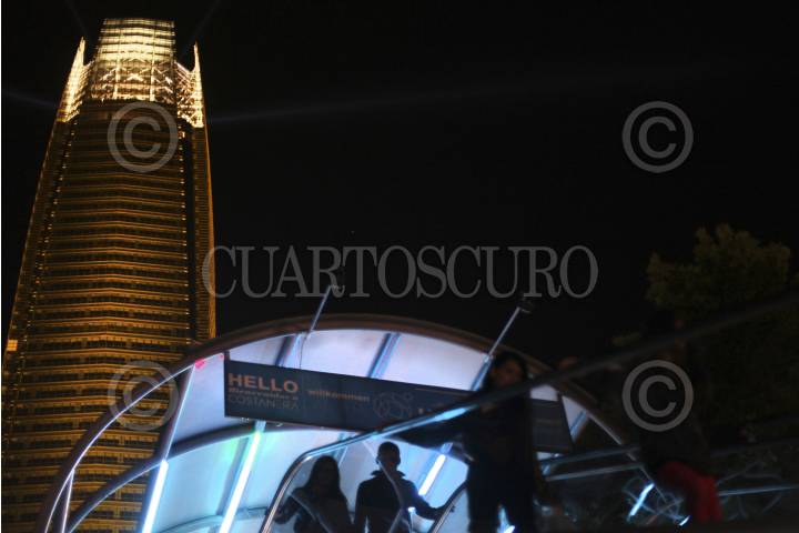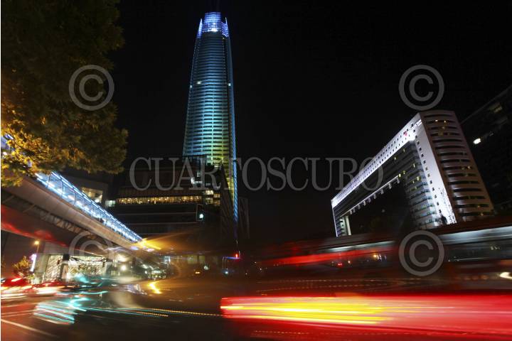 SANTIAGO, CHILE., 07DICIEMBRE2015.- El rascacielos más grande de Iberoamérica, "Costanera Center", ubicado en la comuna de Providencia, en la ciudad de Santiago, Chile, se iluminó con un show de luces multicolores para celebrar las fiestas decembrinas. El espectáculo podrá ser observado por miles de chilenos y turistas hasta el próximo 25 de Diciembre. FOTO: FÉLIX MÁRQUEZ /CUARTOSCURO.COM