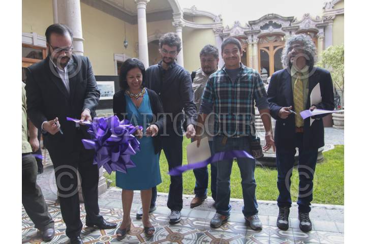 AGUASCALIENTES, AGUASCALIENTES, 19OCTUBRE2013.- Corte de listón de la inauguración de la exposición "Fiestas y festejos populares en México", convocado por el Instituto Municipal Aguascalentense para la Cultura y Cuartoscuro ayer en el Museo Regional de Historia de Aguascalientes. En la foto, las autoridades municipales y los ganadores de los tres primeros lugares. FOTO: RITA SANTIAGO /CUARTOSCURO.COM