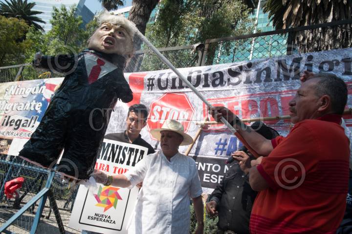 CIUDAD DE MÉXICO, 20ENERO2018.- Distintas organizaciones entre ellas la Asamblea Nacional de Articulación de los Trabajadores del Campo y la Ciudad se manifestaron frente a las instalaciones de la Embajada de Estados Unidos en reforma. El contingente manifestó su descontento contra Donald Trump y las medidas extremistas y racistas de su gobierno como la aplicación de la Alianza para la Seguridad y el Progreso de América del Norte en especifico del plan de Mérida. FOTO: ANDREA MURCIA /CUARTOSCURO.COM