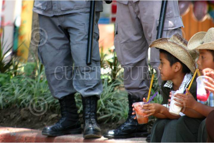 OAXACA, OAXACA 17AGOSTO2008.-Continua el operativo “Centro Histórico nocturno” para vigilar 75 manzanas del primer cuadro y reforzar patrullajes en las 13 agencias. En la imagen, unos niños toman un raspado sin preocuparse por la vigilancia policiaca. FOTO:MAX NÚÑEZ/CUARTOSCURO.COM