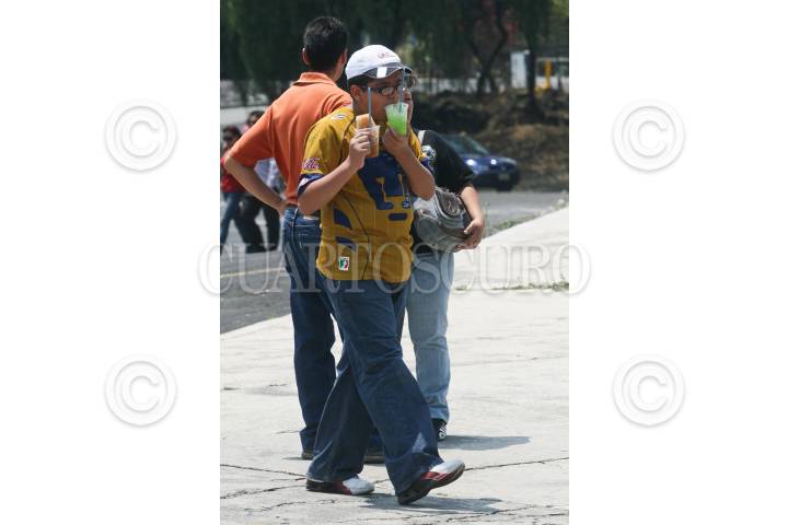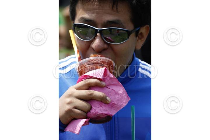 MÉXICO, D.F., 09ABRIL2009.- Ante el fuerte calor que se siente en la ciudad de México, un joven se refresca con un tradicional raspado. FOTO: ISAAC ESQUIVEL/CUARTOSCURO.COM