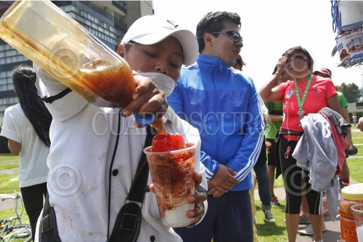 MÉXICO, D.F., 31AGOSTO2014.- Un vendedor de raspados, bebida refrescante y típica mexicana, aprovecha el calor para vender su producto en las islas de ciudad universitari. FOTO: ISAAC ESQUIVEL /CUARTOSCURO.COM