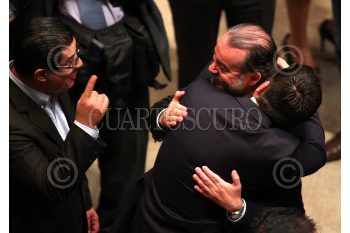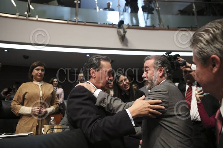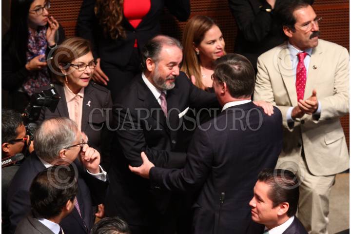 CIUDAD DE MÉXICO, 26OCTUBRE2016.- Emilio Gamboa Patrón, saluda a Raúl Cervantes, quien tomó protesta como Procurador General de la República, luego de la votación favorable en la sesión ordinaria en el Senado de la República. FOTO: ADOLFO VLADIMIR /CUARTOSCURO.COM