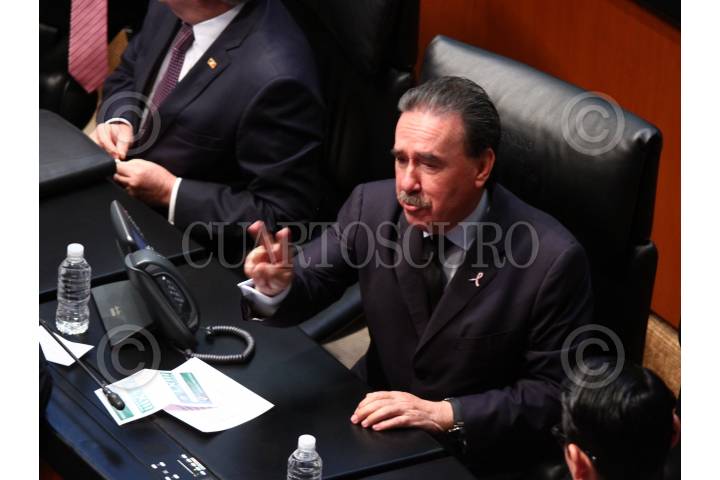 CIUDAD DE MÉXICO, 26OCTUBRE2016.- Emilio Gamboa Patrón, senador y coordinador del grupo parlamentario del PRI, durante la toma de protesta de Raúl Cervantes como Procurador General de la República, luego de la votación favorable en la sesión ordinaria en el Senado de la República. FOTO: ADOLFO VLADIMIR /CUARTOSCURO.COM