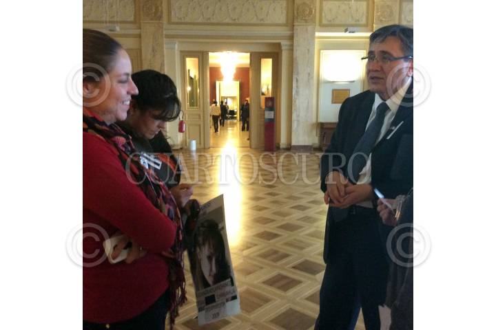 GINEBRA, SUIZA, 02FEBRERO2015.- El Ombudsman nacional mexicano, Luis Raúl González Pérez, asistió al Comité contra la Desaparición Forzada, en Ginebra, Suiza, presentar el posicionamiento de su organismo sobre este fenòmeno en el país. En la imágen, Gonzáles Pérez dialoga con familiares de personas desaparecidas, durante un receso de los trabajos. FOTO: CUARTOSCURO.COM