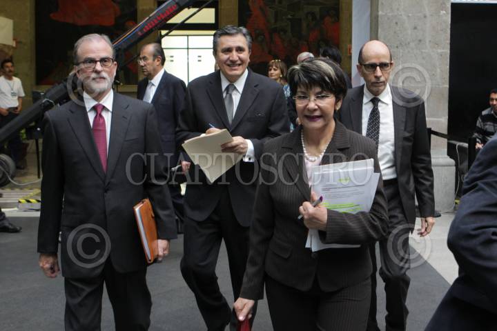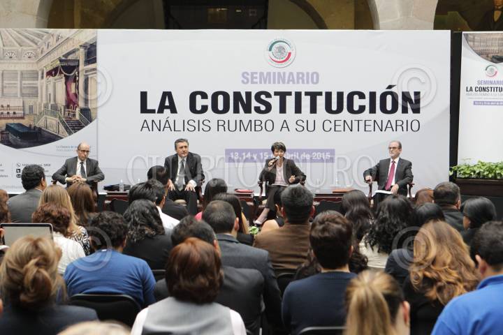 MEXICO, D.F., 14ABRIL2015.- En el marco del segundo día del Seminario “La constitución, análisis rumbo a su centenario" los senadores, Angélica de la Peña y Enrique Burgos acompañaron al Dr. Luis Raúl González Pérez, Presidente De la CNDH y al Dr. Fabián Aguinaco Bravo, abogado del ITAM y el Dr. Miguel Sarre Iguiniz, investigador del ITAM. FOTO:SENADO /CUARTOSCURO.COM