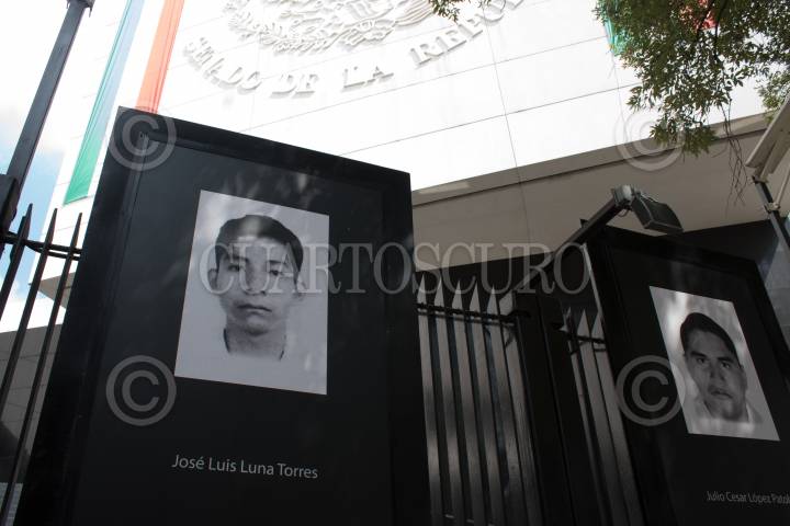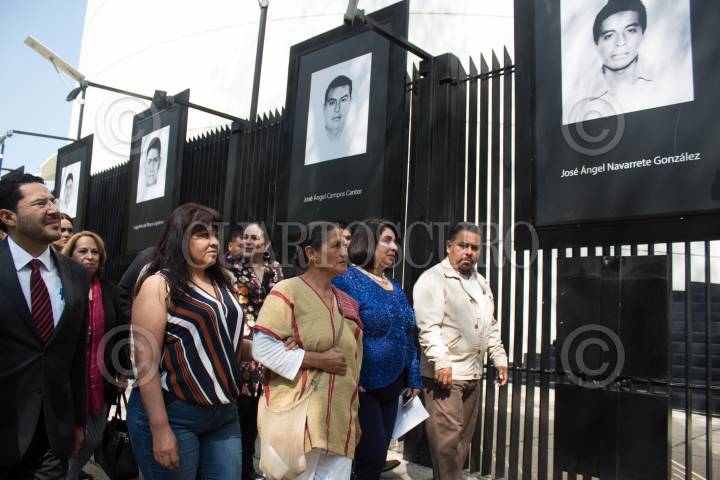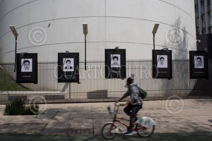 CIUDAD DE MÉXICO, 26SEPTIEMBRE2018.-Esta mañana se inauguró en el Senado de la República la exposición fotográfica “Desaparición forzada. Vivos se los llevaron, vivos los queremos” la cual muestra los rostros de los 43 estudiantes desaparecidos hace cuatro años en Iguala, Guerrero. La exposición fue inaugurada por el Senador Martí Batres, quien realizó un pase de lista de los nombres de los estudiantes desaparecidos de la Escuela Normal Rural “Raúl Isidro Burgos”. Las fotografías de los estudiantes normalistas se encuentran en las rejas del exterior del Senado de la República. FOTO: MAGDALENA MONTIEL/ CUARTOSCURO.COM