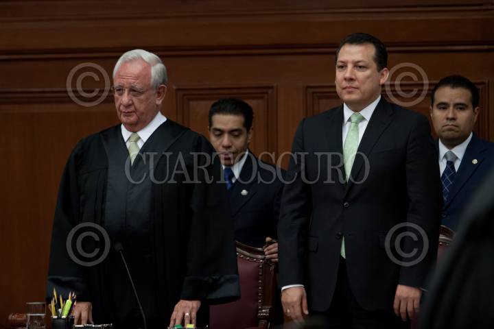 MÉXICO, D.F., 06MARZO2012.- Juan Silva Meza, ministro presidente de la Suprema Corte de Justicia de la Nación y Raúl Plascencia Villanueva, presidente de la Comisión Nacional de los Derechos Humanos durante el informe que presento el titular de Derechos Humanos ante el pleno de la Suprema Corte. FOTO: RODOLFO ANGULO /CUARTOSCURO.COM