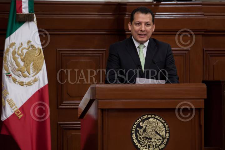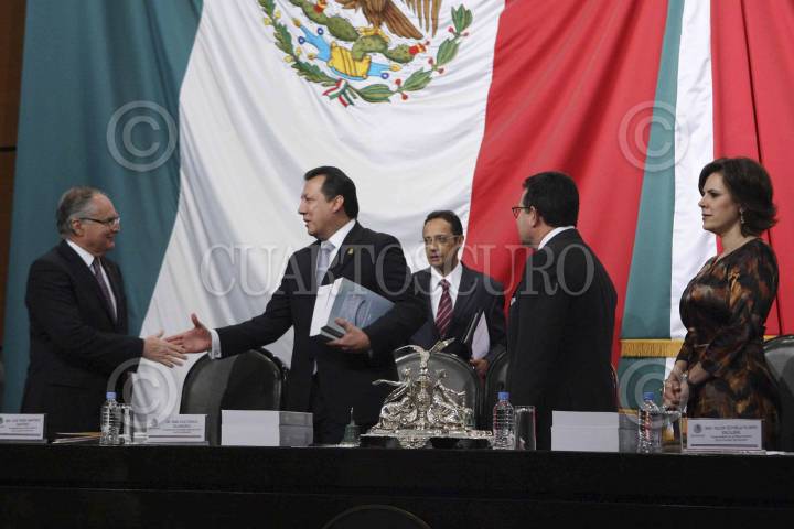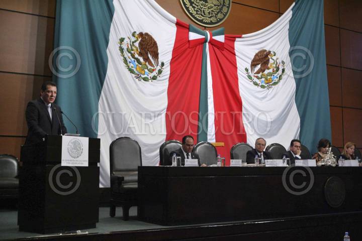 MÉXICO, D.F., 30ENERO2013.- El presidente de la Comisión Nacional de los Derechos Humanos (CNDH), Raúl Plascencia, acudio ante la Comisión Permanente del Congreso de la Unión para rendir su informe anual de labores al frente de ese organismo, durante su discurso alertó sobre la proliferación de acciones de autodefensa y la decisión de tomar la justicia por mano propia en comunidades de estados como Guerrero, debido a la alta percepción de inseguridad y falta de confianza en las autoridades. FOTO: CUARTOSCURO.COM