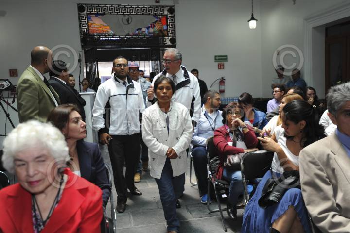 MÉXICO, D.F., 11SEPTIEMBRE2014.- La investigación de la Comisión Nacional de Derechos Humanos sobre la muerte del niño José Luis Tehuatlie, en Chalchihuapan, Puebla, determinó que ésta fue provocada por el uso excesivo de la fuerza de la Secretaría de Seguridad Pública del estado. Según la CNDH, la causa fue el impacto de uno de los 54 proyectiles de largo alcance, de gas lacrimógeno, que usaron los elementos para contener la manifestación. El ombudsman Raúl Plascencia emitió una recomendación para el gobernador poblano Rafael Moreno Valle, para que investigue y actúe conforme a la ley contra Facundo Rosas, secretario de Seguridad Pública del Puebla. Elia Tamayo Montes madre del pequeño asistió al informe. FOTO: MOISÉS PABLO /CUARTOSCURO.COM