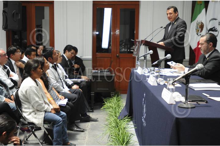 MÉXICO, D.F., 09ABRIL2014.- Raúl Plascecia, presidente de la Comisión Nacional de Derechos Humanos, durante el anuncio de la primera competencia nacional de debate sobre derechos humanos, en la sede de esta comisión que se ubica en la calle de Cuba en el centro histórico. FOTO: MOISÉS PABLO /CUARTOSCURO.COM