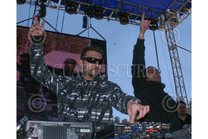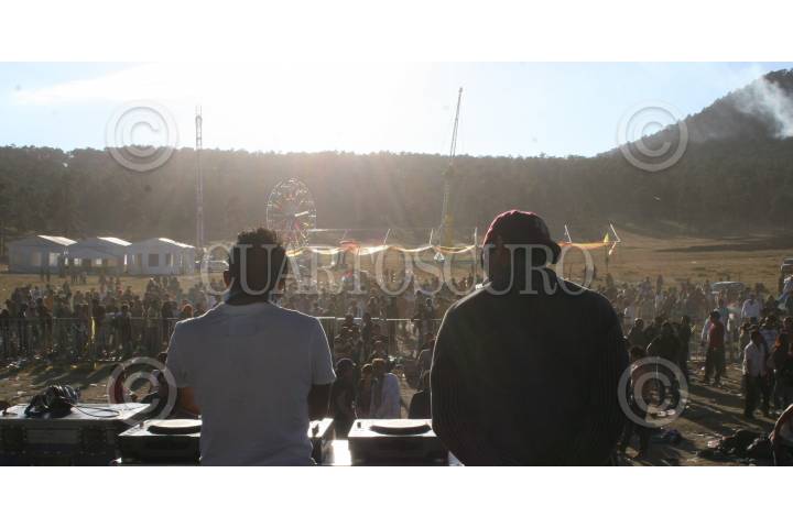 MÉXICO, D.F., 04ABRIL2009.- David Amo & Julio Navas, durante su "Live Act", que el pasado 20, 21 y 22 de Marzo, se llevó acabo el Festival de Musica Electronica "Moots Festival", el cual conto con los mejores 30 dj´s nacionales y extranjeros, este evento se realizó en las inmediaciones del cerro del Ajusco en los limites con el Estado de México. Esta fiesta "Rave" con mas de 48 horas de música contínua al aire libre, ademas de ofrecer inigualables y nunca antes vistos "live´s act´s", donará con el 10% de las utilidades del evento a la Fundación Michou y Mau, I.A.P; una organización destinada a brindar asistencia a niños mexicanos con quemaduras severas. Así como al Fideicomiso para los Niños Indígenas en México. La escena rave no solamente se refiere a la música techno. Esta escena no es referirse a una moda y mucho menos a drogas. Es algo especial que enfoca la felicidad y la unidad abarcando hasta aspectos de espiritualismo y misticismo. Abran sus corazones y dejen fluir su buena vibra al exterior, compartan, eliminen los límites, abran su corazón y su mente. FOTO: MISAEL VALTIERRA/CUARTOSCURO.COM