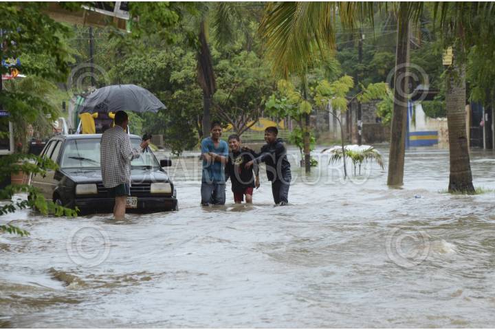ACAPULCO, GUERRERO, 21OCTUBRE2013.- Inundaciones provocadas por el paso del huracán Raymond en el Conjunto residencial Villas del Mar asentamiento ubicado en la zona del Acapulco Diamante, donde acudieron soldados y marinos y personal de Protección Civil del gobierno del estado a realizar la evacuación de cien familias. FOTO: BERNANDINO HERNÁNDEZ /CUARTOSCURO.COM