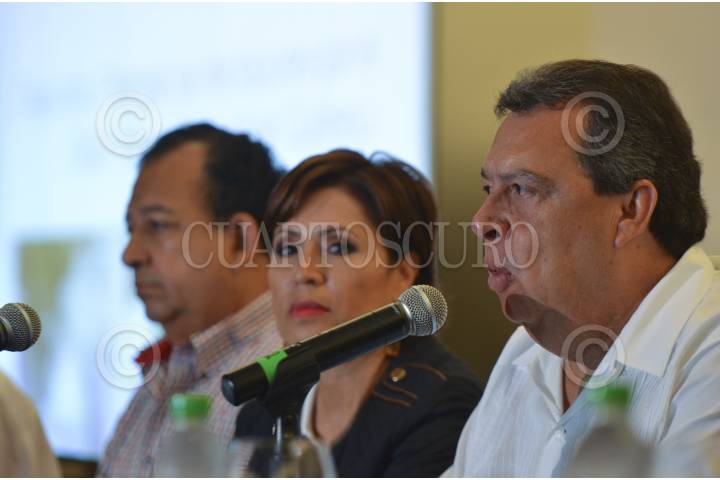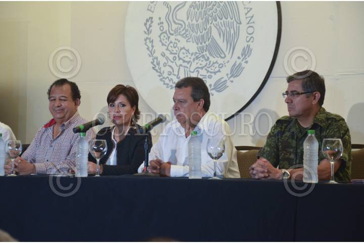 ACAPULCO, GUERRERO, 21OCTUBRE2013.- El Gobernador Ángel Aguirre Rivero, Rosario Robles, secretaria de Sedesol, y el presidente municipal de Acapulco Luis Walton Aburto y autoridades del Fonden informaron que se mantiene en alerta en ocho municipios de la Costa Grande y colonias inundables en Acapulco, además se reportó el desalojo de más de 150 personas que fueron evacuadas en la Luis Donaldo Colosio y en el poblado de Los Cimientos, en Coyuca de Benítez, que volvió a inundarse; además de la colonia San Vicente en Chilpancingo. FOTOS: BERNANDINO HERNÁNDEZ /CUARTOSCURO.COM