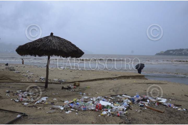 ACAPULCO, GUERRERO, 21OCTUBRE2013.- Ante el huracán Raymond que azota al puerto de Acapulco las playas lucen vacías y se puede apreciar basura arrastrada por la precipitación tropical. FOTO: BERNANDINO HERNÁNDEZ /CUARTOSCURO.COM