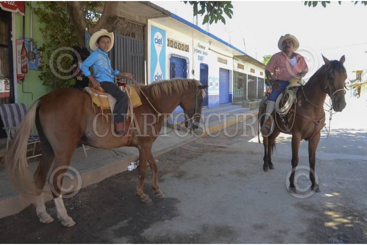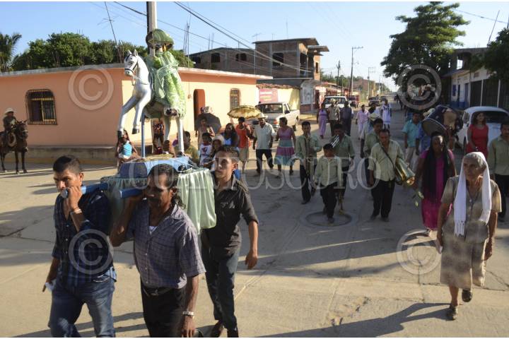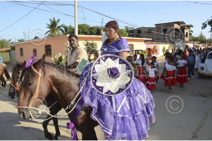 EL JUCHITÁN, GUERRERO, 27JULIO2013.- Desde San Marcos hasta Cuajinicuilapa, en el estado de Guerrero, así como Pinotepa Nacional y Pochutla, en Oaxaca, festejaron el Día del Señor Santiago, patrono de los afromexicanos que habitan esta zona del país, quienes se disfrazan para la ocasión y salen montados en sus caballos para pasearse por todo el pueblo. El santo Santiago es representado como un hombre recio, montado a caballo, con capa y espada, listo para combatir al mal. FOTO: BERNANDINO HERNÁNDEZ /CUARTOSCURO.COM
