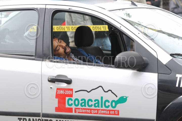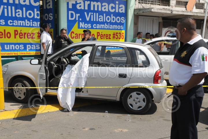 MÉXICO, D.F., 13JUNIO2010.- Un sujeto de nombre Ricardo Villalobos Téllez de 37 años, fue ejecutado a bordo de su auto Chevy con un disparo de arma de fuego en el cráneo cuando se disponía a abrir un local de farmacia con razón social “Farmacias del Doctor Villalobos” de su propiedad, ubicada en avenida Carmelo Pérez esquina con avenida Chimalhuacan colonia Benito Juárez, perímetro del municipio de Nezahualcoyotl; de los delincuentes quienes lograron darse a la fuga se desconocen características. FOTO: LUIS CARBAYO/CUARTOSCURO.COM