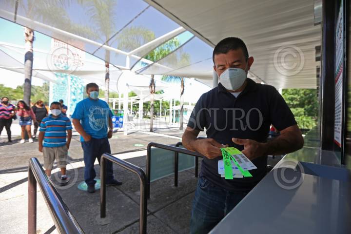Una persona realiza la compra de sus pases para ingresar al Zoológico de Guadalajara, esto después de cuatro meses de permanecer cerrado a causa de la pandemia sanitaria del Coronavirus Covid 19.