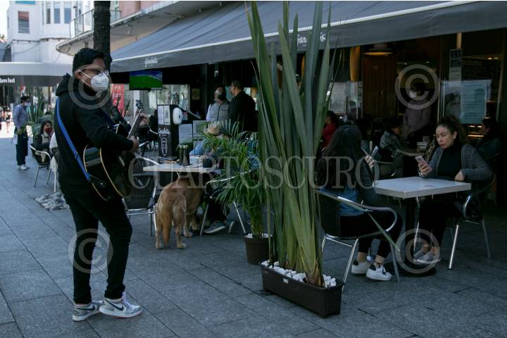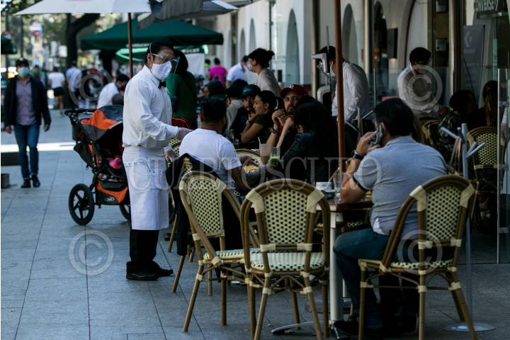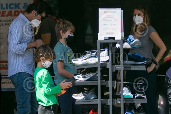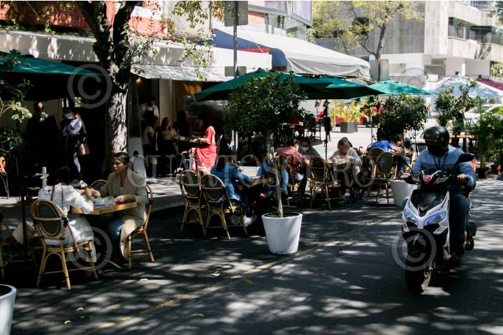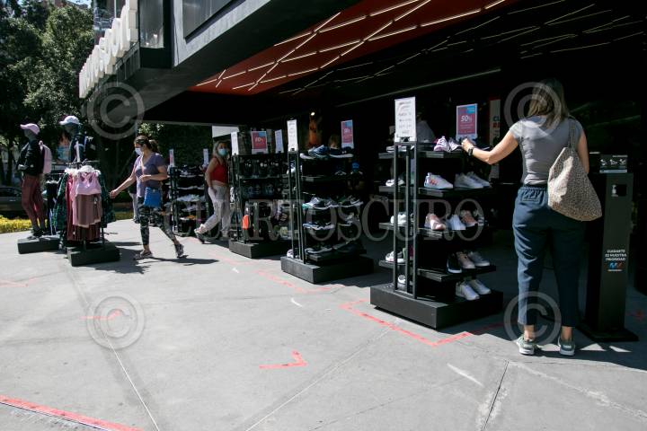 Una tienda deportiva opera al aire libre en la calle de Horacio en Polanco, Miguel Hidalgo.