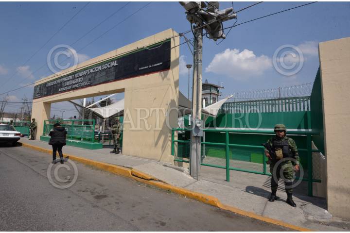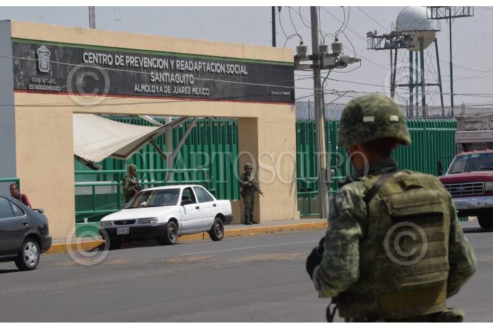 ALMOLOYA DE JUÁREZ, ESTADO DE MÉXICO, 23FEBRERO2018.- Desde muy temprana hora elementos del Ejército y policías de la Secretaría de Seguridad del Estado de México custodiaron las inmediaciones del Centro de Prevención y Readaptación Social de Santiaguito, por la revisión que se llevó a cabo al interior del mismo, estuvieron acompañados por personal de la CODHEM. FOTO: ARTEMIO GUERRA BAZ/ CUARTOSCURO.COM