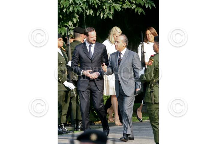 MÉXICO, D.F., 16MARZO2009.- Los príncipes de Noruega, Haakon y Mette Marit, fueron recibidos durante una ceremonia en la residencia oficial de Los Pinos. FOTO: ISAAC ESQUIVEL/CUARTOSCURO.COM