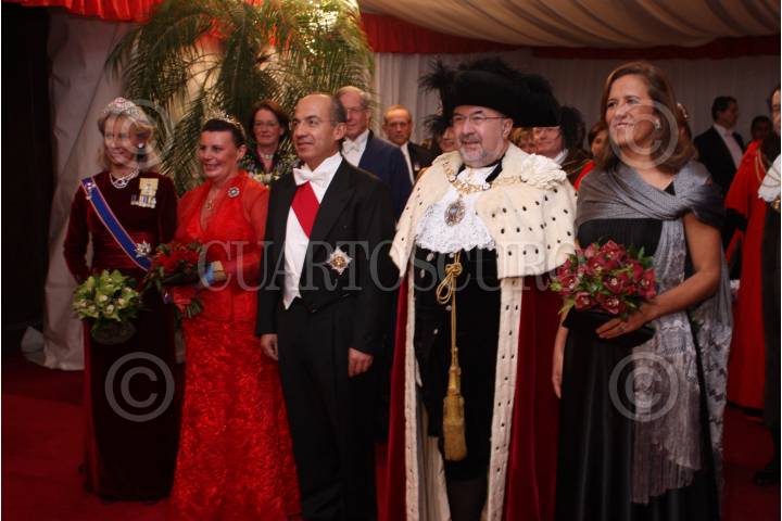 LONDRES, REINO UNIDO, 31MARZO2009.- El presidente de México, Felipe Calderón Hinojosa y su esposa Margarita Zavala durante la cena ofrecida en su honor por Lord Mayor, Ian Luder, evento que se desarrolló en Guildhall. FOTO: ALFREDO GUERRERO/CUARTOSCURO.COM