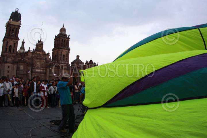 MÉXICO, D.F., 22NOVIEMBRE2009.- Cientos de personas asistieron al levantamiento de globos aerostáticos en la plancha del zócalo, exhibición realizada por el Gobierno del Distrito Federal con el fin de promover el un turismo alternativo. FOTO: SÁSHENKA GUTIÉRREZ/CUARTOSCURO.COM