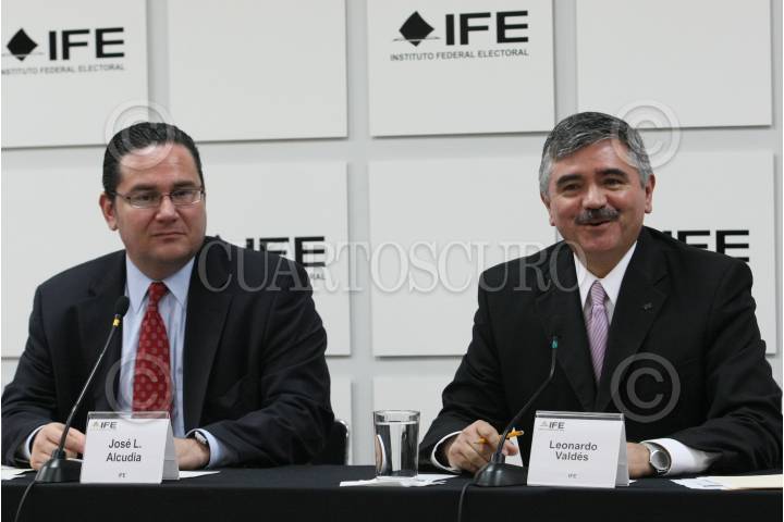 MÉXICO D.F., 17JUNIO2010.- José Luis Alcudia Goya, Coordinador Nacional de Comunicación Social y Leonardo Valdés Zurita, Consejero Presidente del Instituto Federal Electoral en la conferencia de prensa realizada el día de ayer. FOTO: CUARTOSCURO.COM