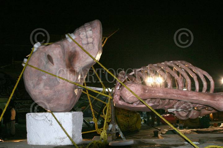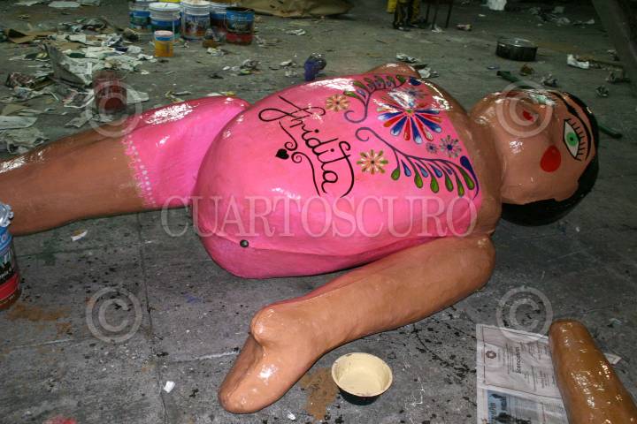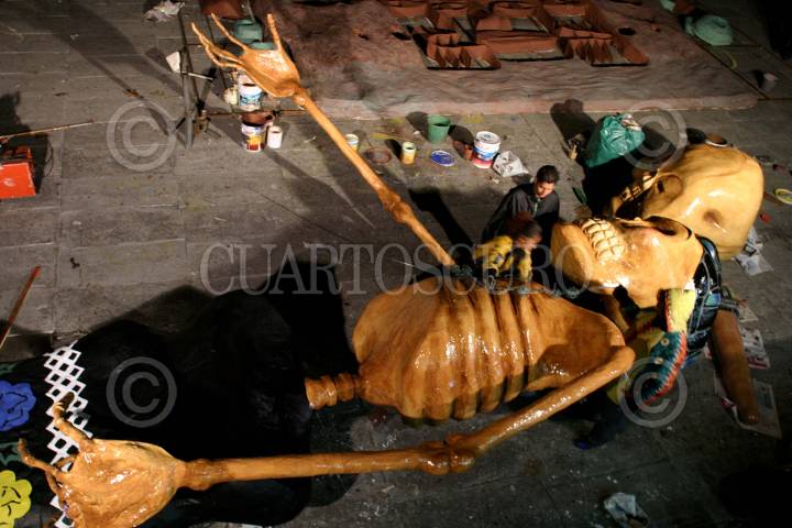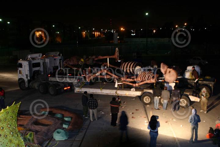 MÉXICO D.F. 31OCTUBRE2007.- Trasladan durante la madrugada de hoy a las calaveras gigantes realizadas en la Fabrica de Artes y Oficios (FARO) de Oriente hacia la plancha del zocalo capitalino para la cebracion del dia de muertos. FOTO: SAUL LOPEZ/CUARTOSCURO.COM