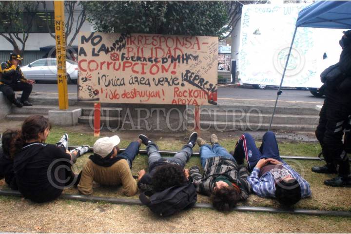 MÉXICO, D.F., 21NOVIEMBRE2008.- Vecinos de Polanco se manifiestan en el cruce de las calles Ejercito Nacional y Ferrocarril de Cuernavaca en protesta por la construccion de las obras realizadas en la colonia. FOTO: JULIETA MORA/CUARTOSCURO.COM