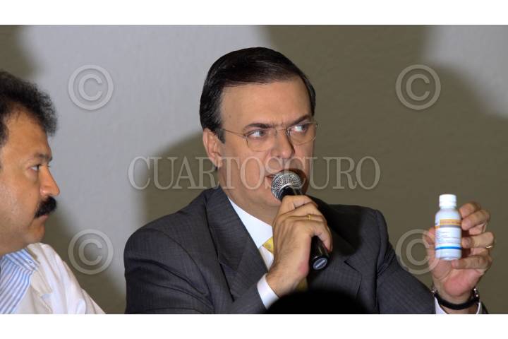 MÉXICO D.F., 25ABRIL2009.- Marcelo Ebrard jefe de Gobierno presentó un informe de acciones realizadas por el gobierno capitalino ante la alerta epidemiológica que vive la ciudad de México, durante el informe el mandatario capitalino estuvo acompañado del secretario de Salud, Armando Ahued Ortega FOTO: SÁSHENKA GUTIÉRREZ/CUARTOSCURO.COM