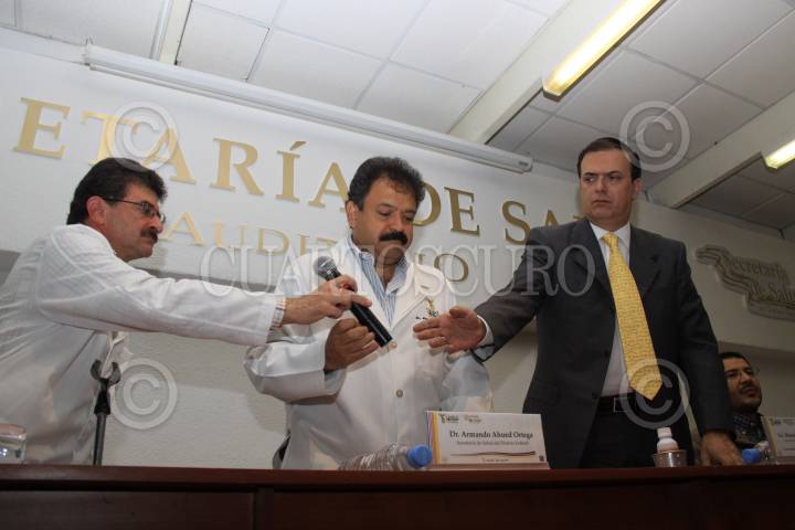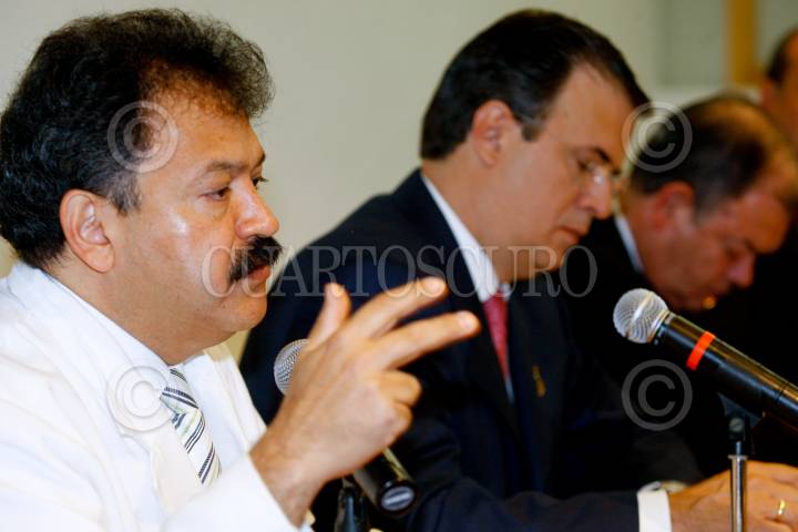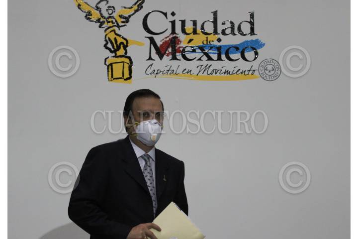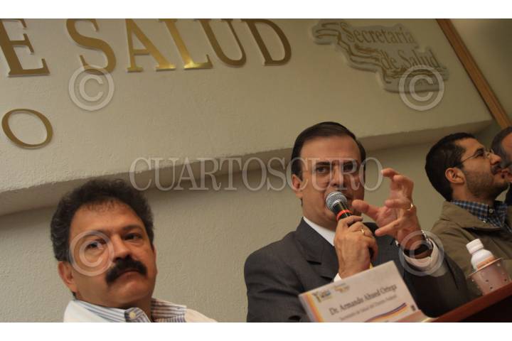 MÉXICO, D.F., 30ABRIL2009.- Armando Ahued Ortega, secretario de Salud capitalino durante una conferencia de prensa en donde se presento el informe de acciones realizadas por el gobierno capitalino ante la alerta epidemiológica. FOTO: RODOLFO ANGULO/CUARTOSCURO.COM