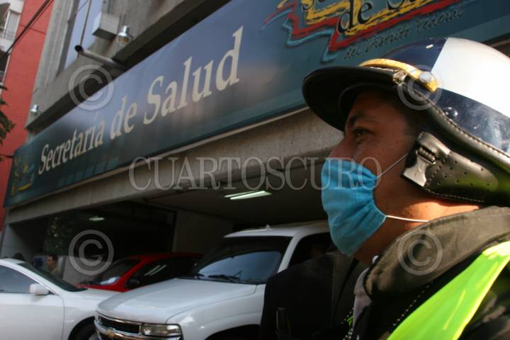 MÉXICO, D.F., 26ABRIL2009.- Policias que resguardan la Secretaria de Salud portan tapabocas para evitar la influencia porcina que es una preocupacion para todos los Mexicanos. FOTO: RICARDO CASTELAN/CUARTOSCURO.COM